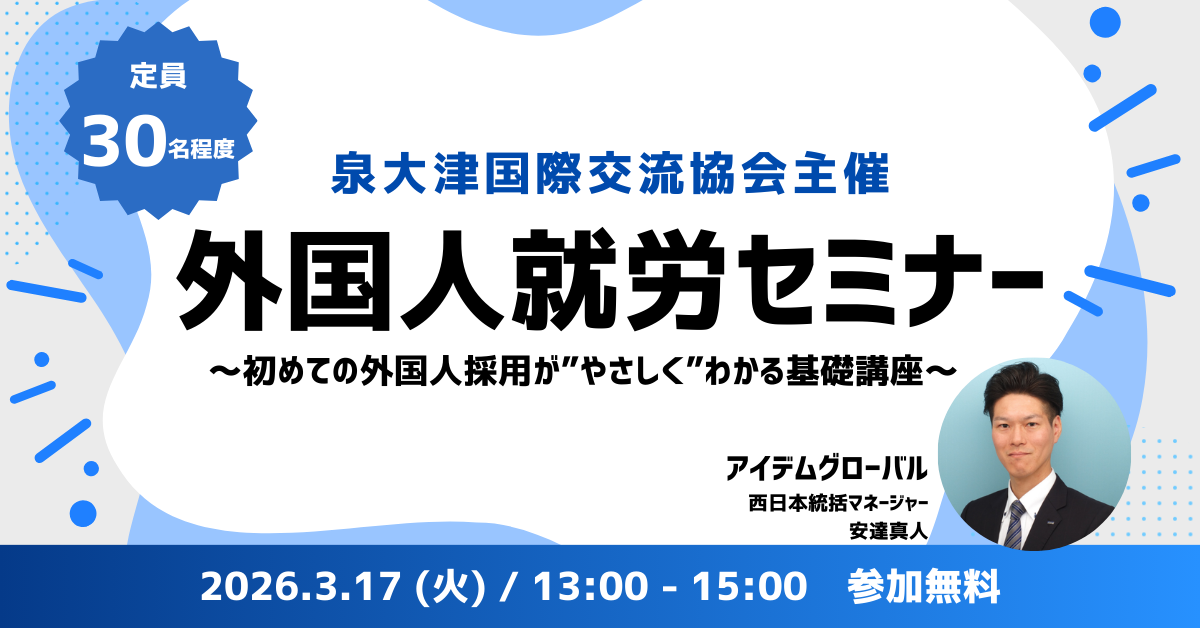 【登壇情報】泉大津市商工会議所主催「外国人就労セミナー」に登壇します 2026.02.11