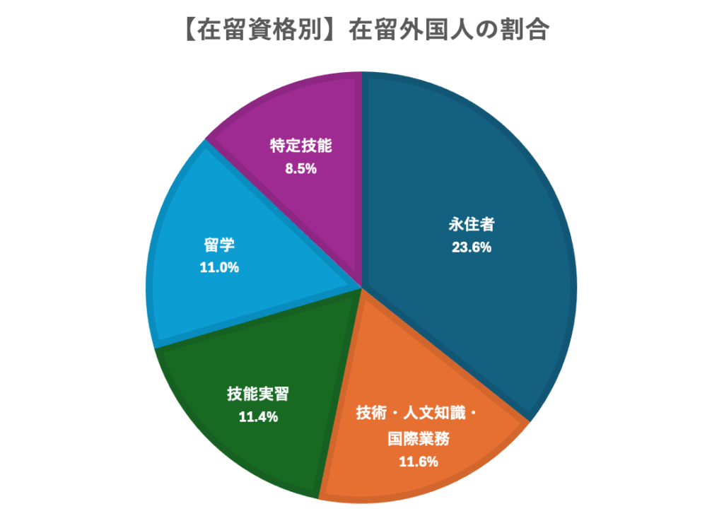 これらの数字から、日本の外国人受け入れは「長期定住」「専門職」「育成・教育」「即戦力労働力」という複数の目的に分かれており、多様な在留資格が社会全体を支えていることがわかります。